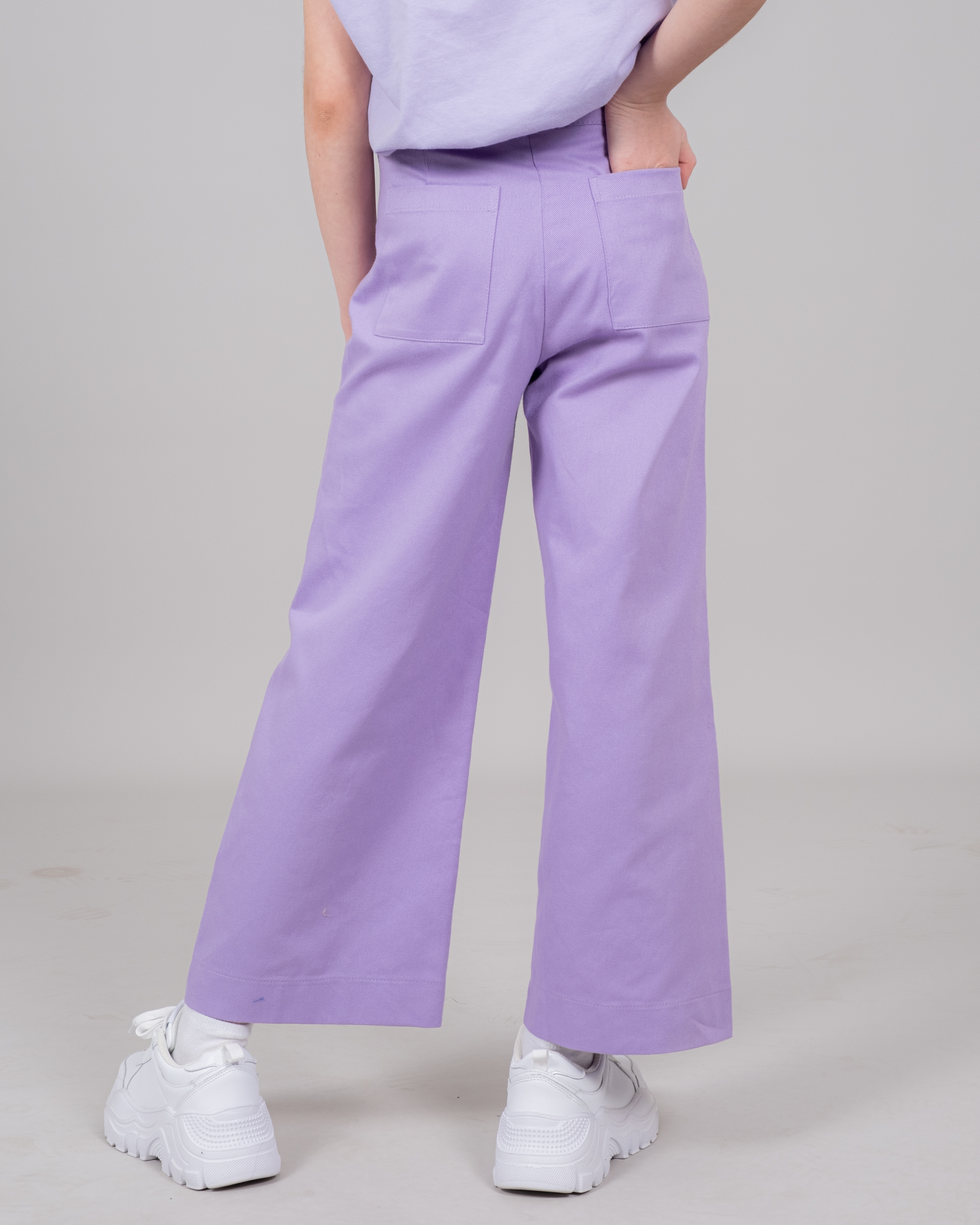 Палаццо - это свободные брюки с трендовой высокой посадкой. Брюки выполнены из хлопкового твила. Модель впишется в любой весенний и летний образы. Фасон позволяет сочетать джинсы с майками, топами, блузками и кардиганами.