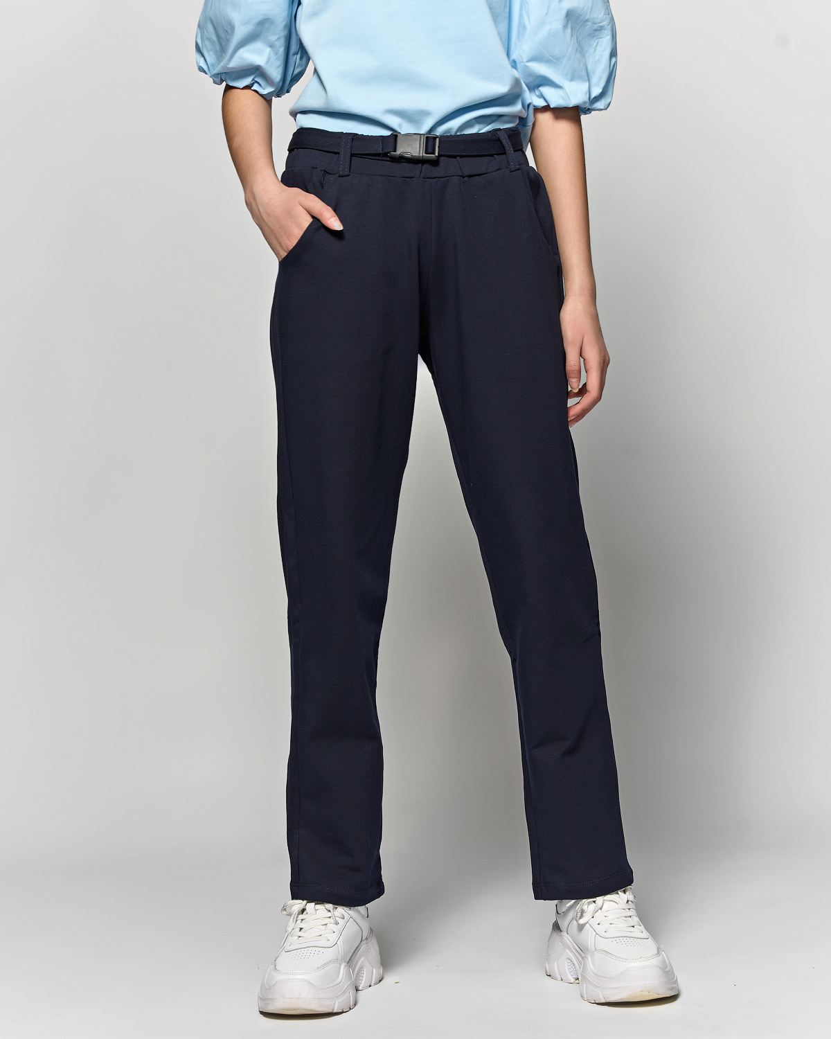 Трикотажные брюки Cegisa для девочек оптом. Комфортная посадка на талии за счёт эластичного пояса на резинке, крой свободный, слегка зауженный к низу. Модель дополнена ремнем.