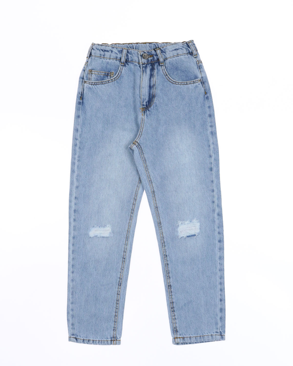 Модные рваные джинсы для девочки. Плотная джинсовая ткань делает их актуальными в любое время года и позволяет носить каждый день. Комфортная посадка не сковывает движения, при этом не делает джинсы слишком объёмными. Удобная функциональная резинка в поясе позволяет регулировать объем на талии. Ребенок  может сочетать джинсы с любым верхом и наслаждаться разными стилями, в зависимости от настроения.