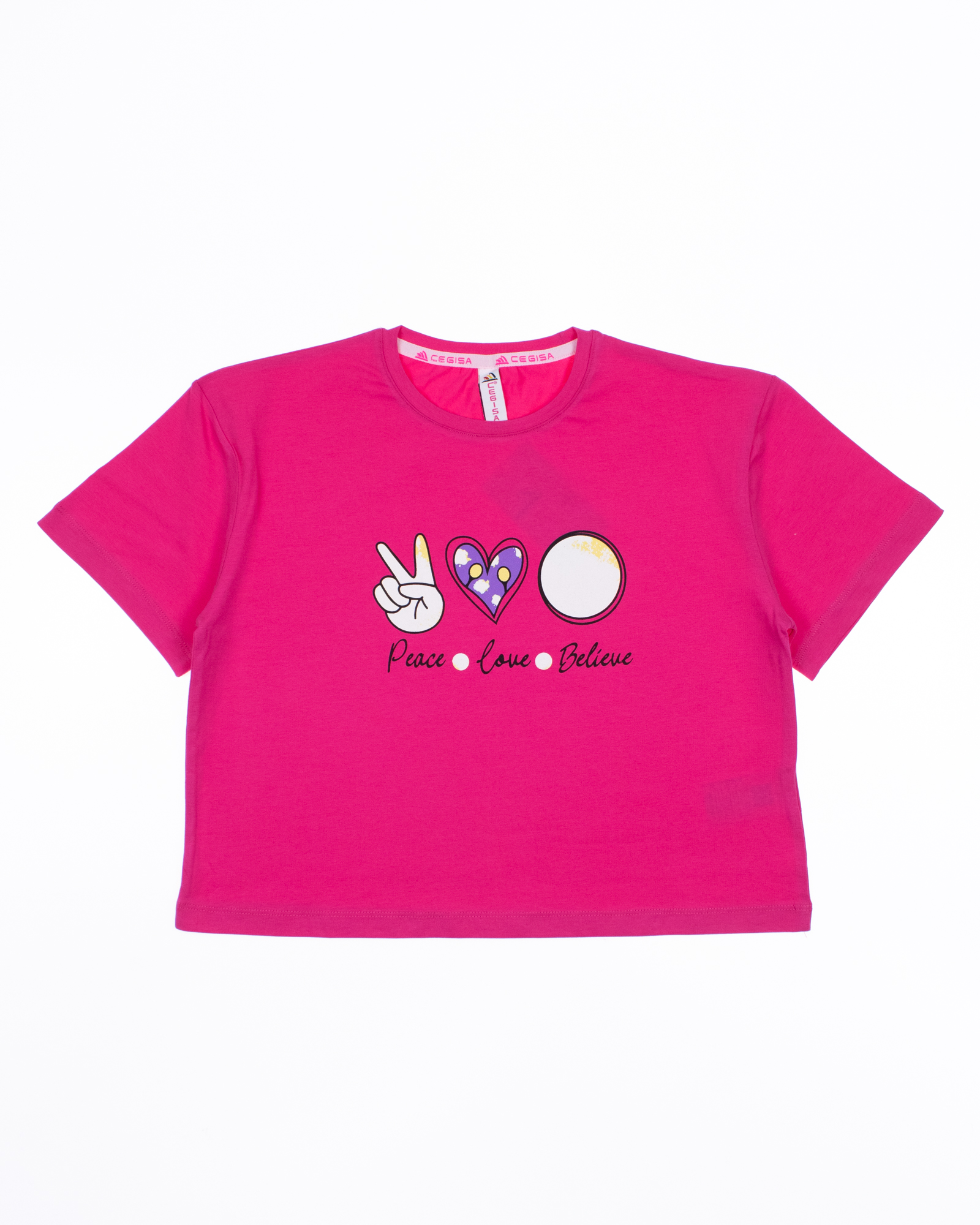 Футболка Cegisa для девочки оптом, выполнена из высококачественного материала кулирка с добавлением эластана. Приятная на ощупь ткань футболки с принтом не потеряет свой первоначальный вид после множества стирок. Футболка на девочку хорошо пропускает воздух и не закатывается. Модель укороченная не сковывает движения и комфортна в носке. Стильная и милая дизайнерская печать прекрасно дополнит образ. Футболка отлично подходит для повседневной носки, физкультуры или дома.