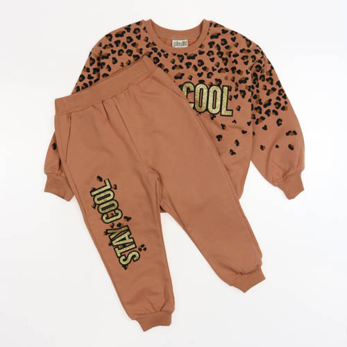 Базовый   костюм для девочки из тонкого футера без начеса . Комплект одежды состоит из свитшота  и брюк с леопардовым принтом. Такой костюм станет отличным дополнением гардероба любой девочки как для повседневной носки, так и для занятий спортом, бегом,  а также будет уютным, мягким домашним нарядом в прохладное время года!