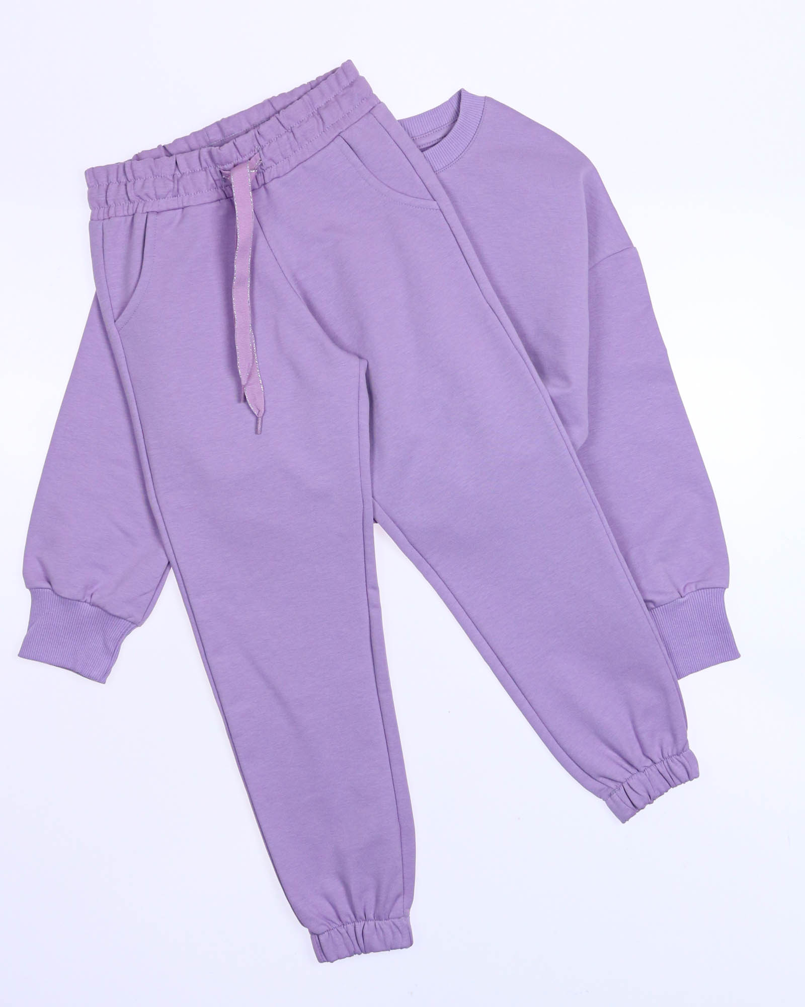 Стильный костюм создан для занятий спортом и прогулок.Свитшот со спущенной линией плеча, брюки с манжетами. Костюм выполнен из трикотожа футер 2х нитка.
