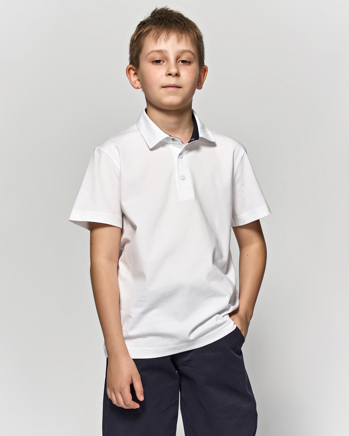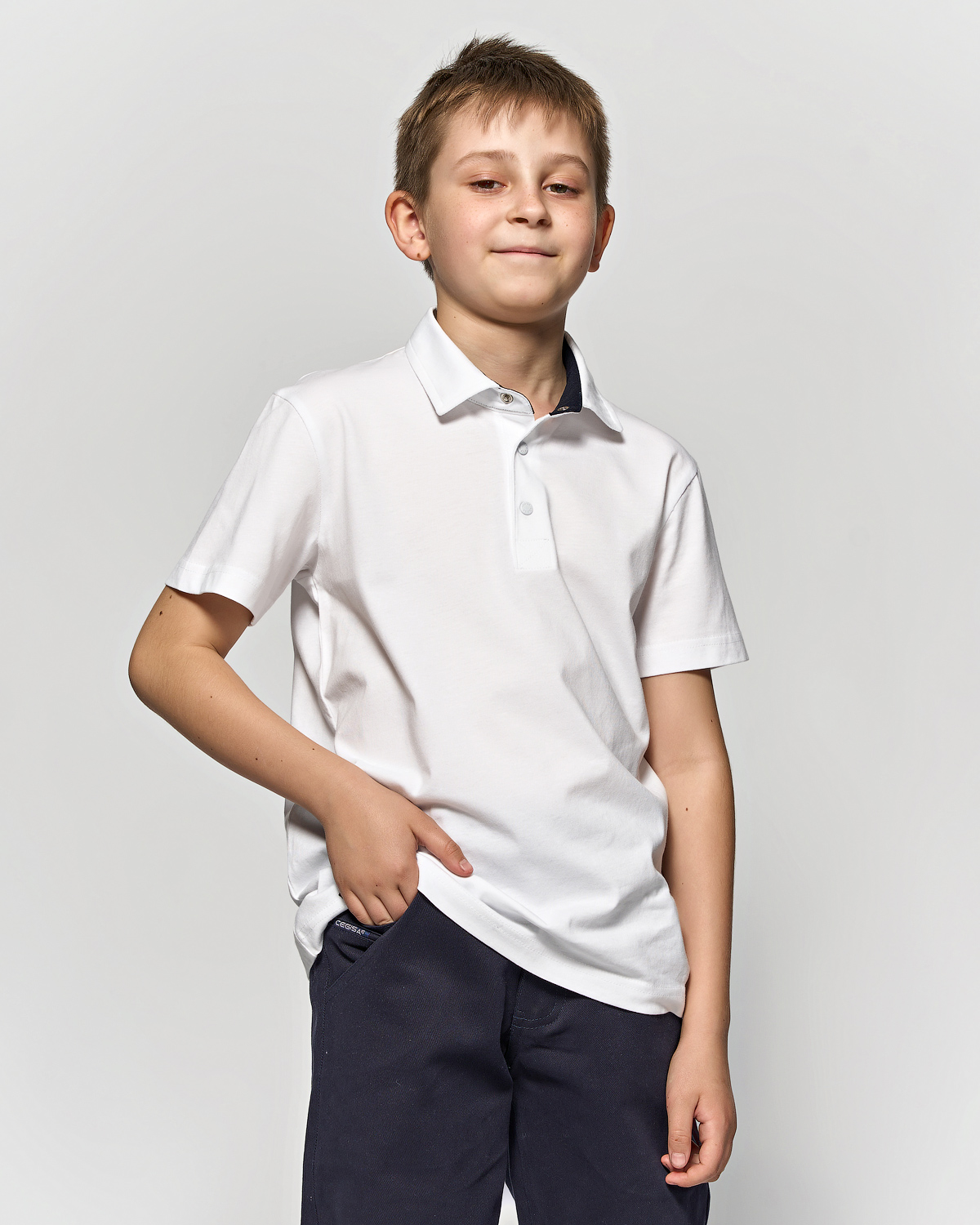 Однотонная рубашка- поло  для мальчика Cegisa оптом. Поло прямого кроя  с застежкой -кнопки. Изготовлена из натурального трикотажного хлопка. Модель с короткими рукавами пркрасный вариант для школы.