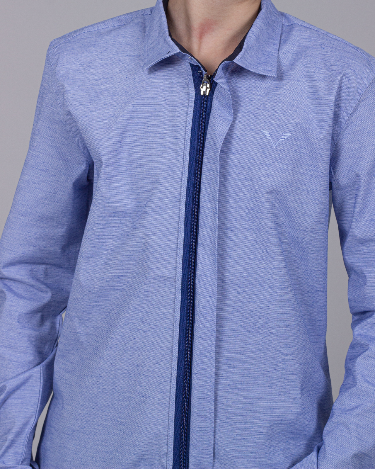 Рубашка для мальчиков прямого кроя с длинными рукавами и классическим отложным воротничком. Модель застегивается на молнию и кнопки.
