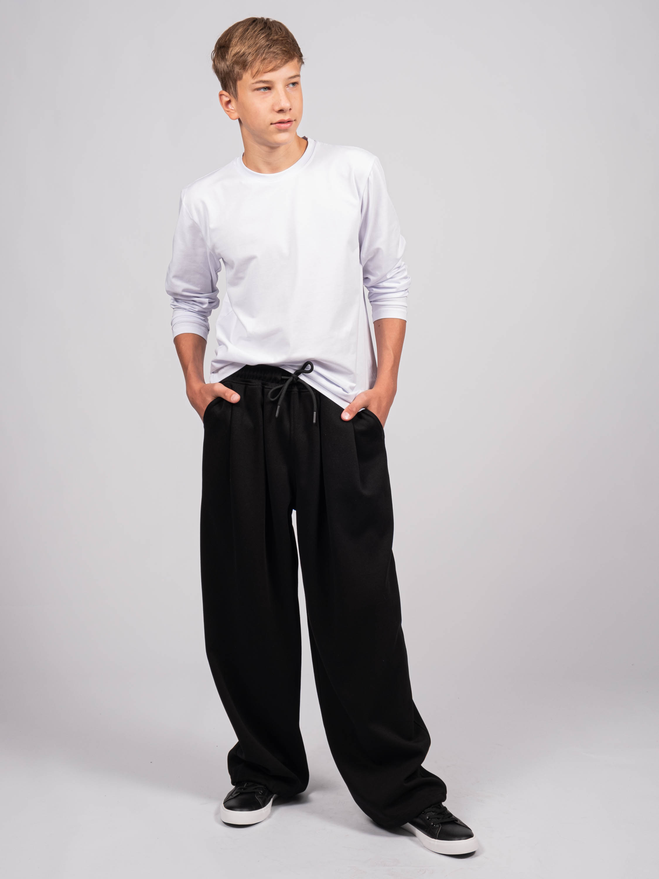 Школьные плотные брюки для мальчиков из трикотажа джерси TMK оптом  созданы специально для ценителей комфорта : на поясе с  резинкой,  два кармана. Широкие, с регулируемой кулиской внизу, брюки-одни из самых актульных фасонов. Штаны отлично подойдут  на каждый день.