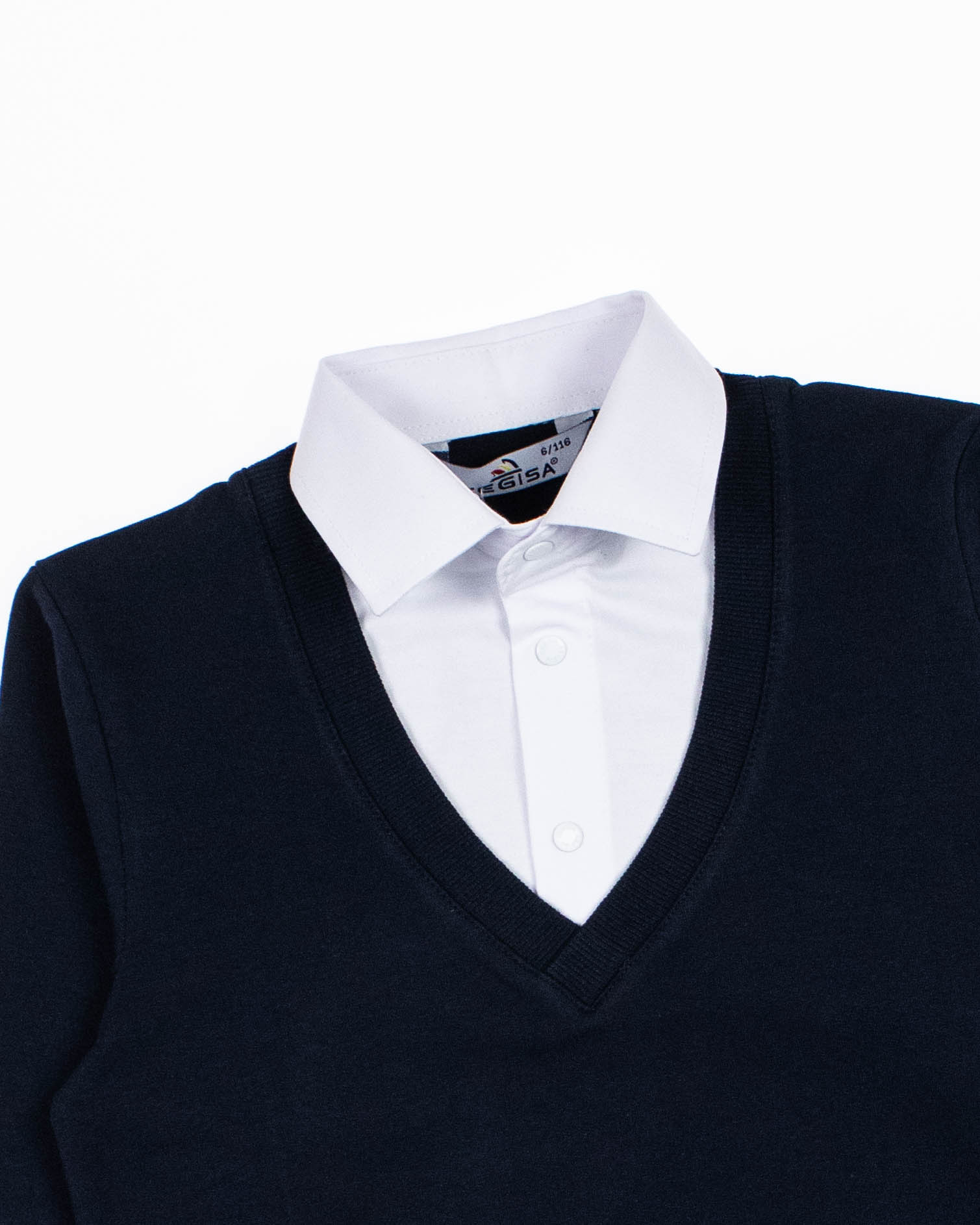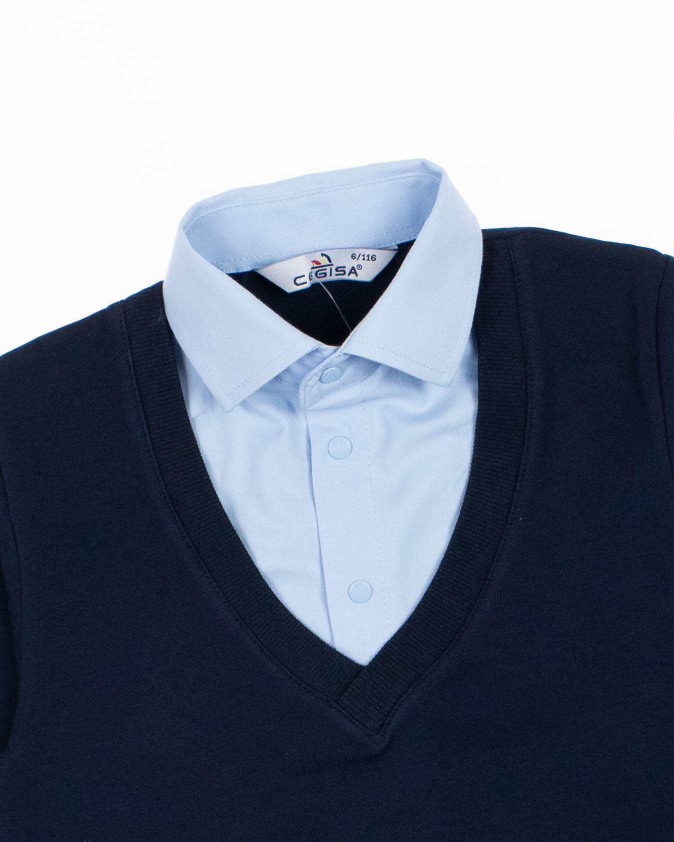 Школьный джемпер-обманка CEGISA для мальчика оптом с имитацией рубашки выполнен из качественного хлопкового трикотажа. Ворот сшит из рубашечной хлопковой ткани, застежка-кнопки. Джемпер-обманка выглядит как полноценный комплект рубашки и джемпера. Мальчик будет всегда опрятен в школе, сохраняя при этом официальный дресс-код. Качество наших изделий подтверждают многократные стирки в стиральной машине, при которых джемпер-обманка сохраняет прежний вид, без деформации и окрашивания рукавов или ворота. Торговая марка CEGISA представляет большой ассортимент качественной, красивой, классической школьной и спортивной одежды турецкого производства для детей и подростков.