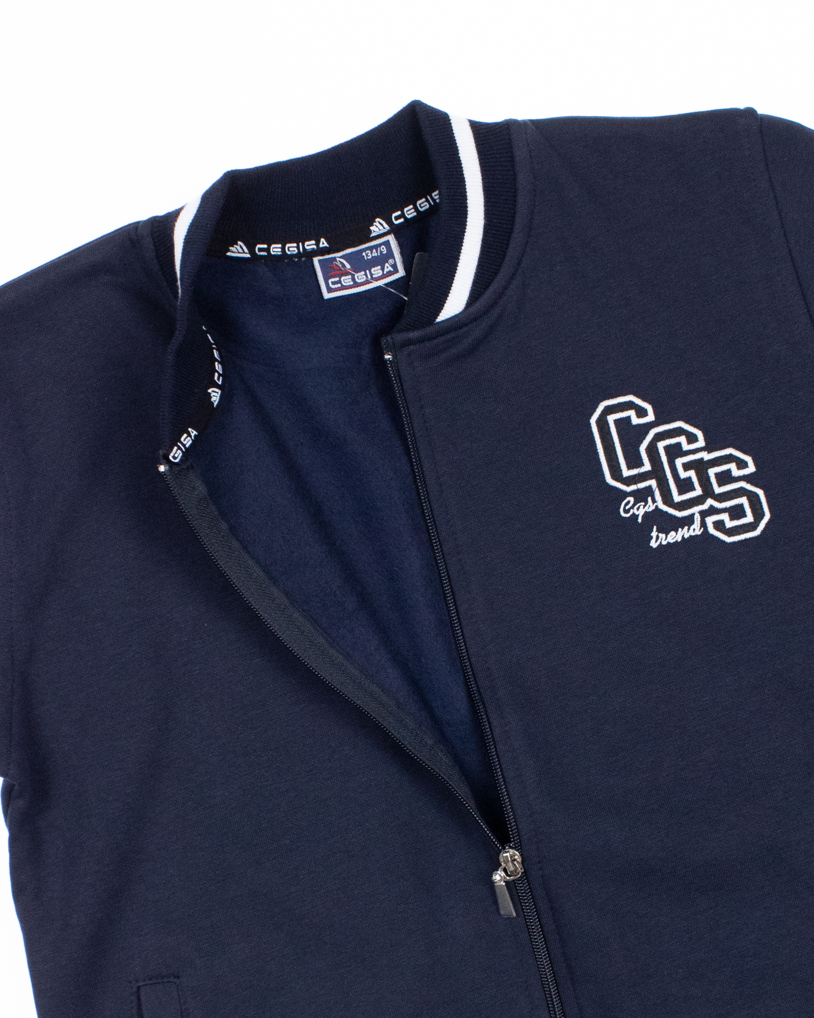 Трикотажный бомбер Cegisa для мальчика оптом. Выполнен из смесовой ткани, в составе которой натуральный хлопок с  добавлением полиэстера, трикотаж плотный с небольшим начесом. Воротник стойка. Низ изделия и рукава на трикотажном манжете. Вместительные карманы и разъемная застежка - молния. Хорошо сохраняет цвет и форму при длительной носке и после многократных стирок. Прекрасно будет смотреться как школьная форма.