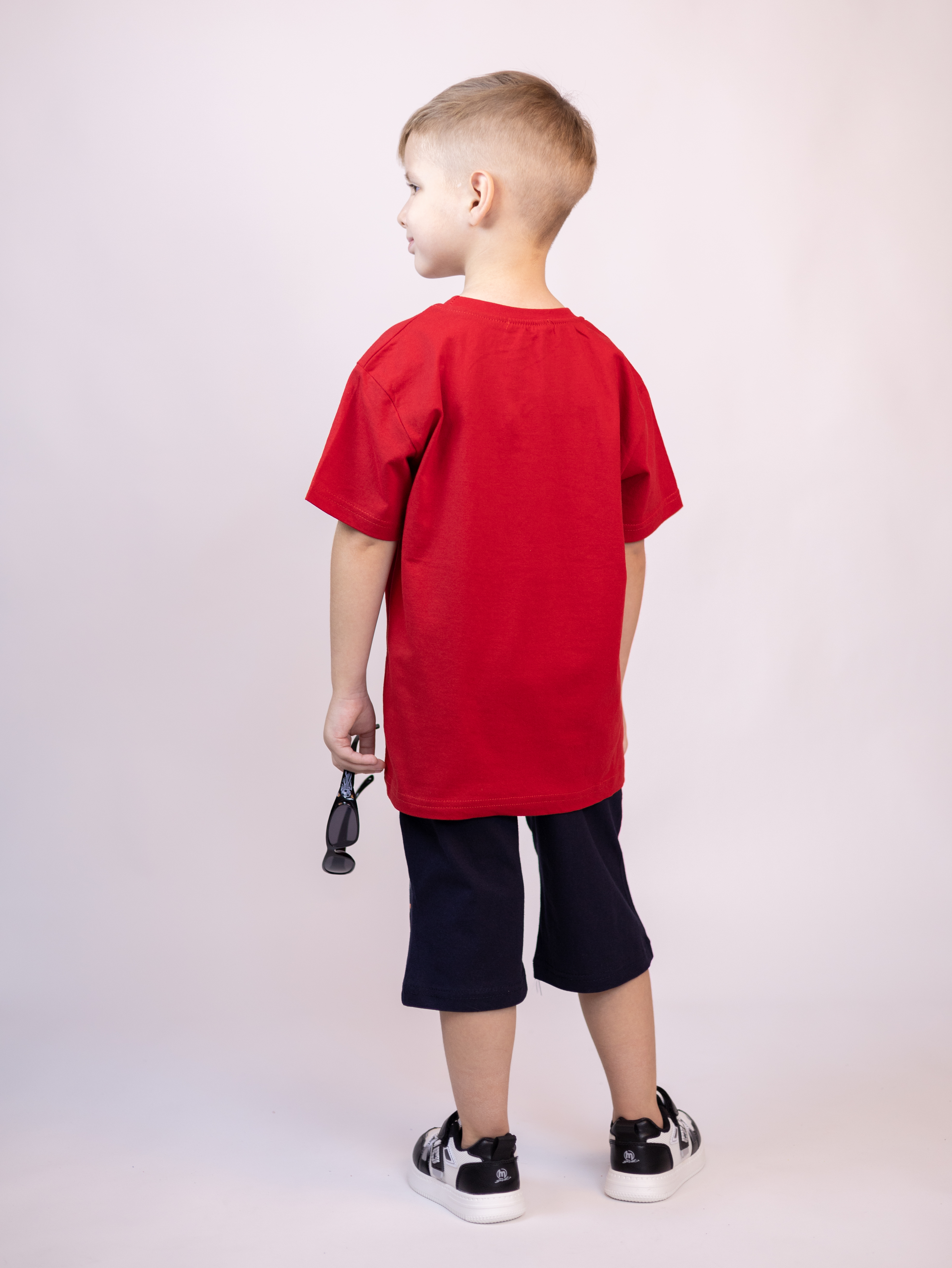 Трикожный костюм BOLD оптом из 100% хлопка с оригинальным, ярким принтом. Шорты трикотажные с карманами.
