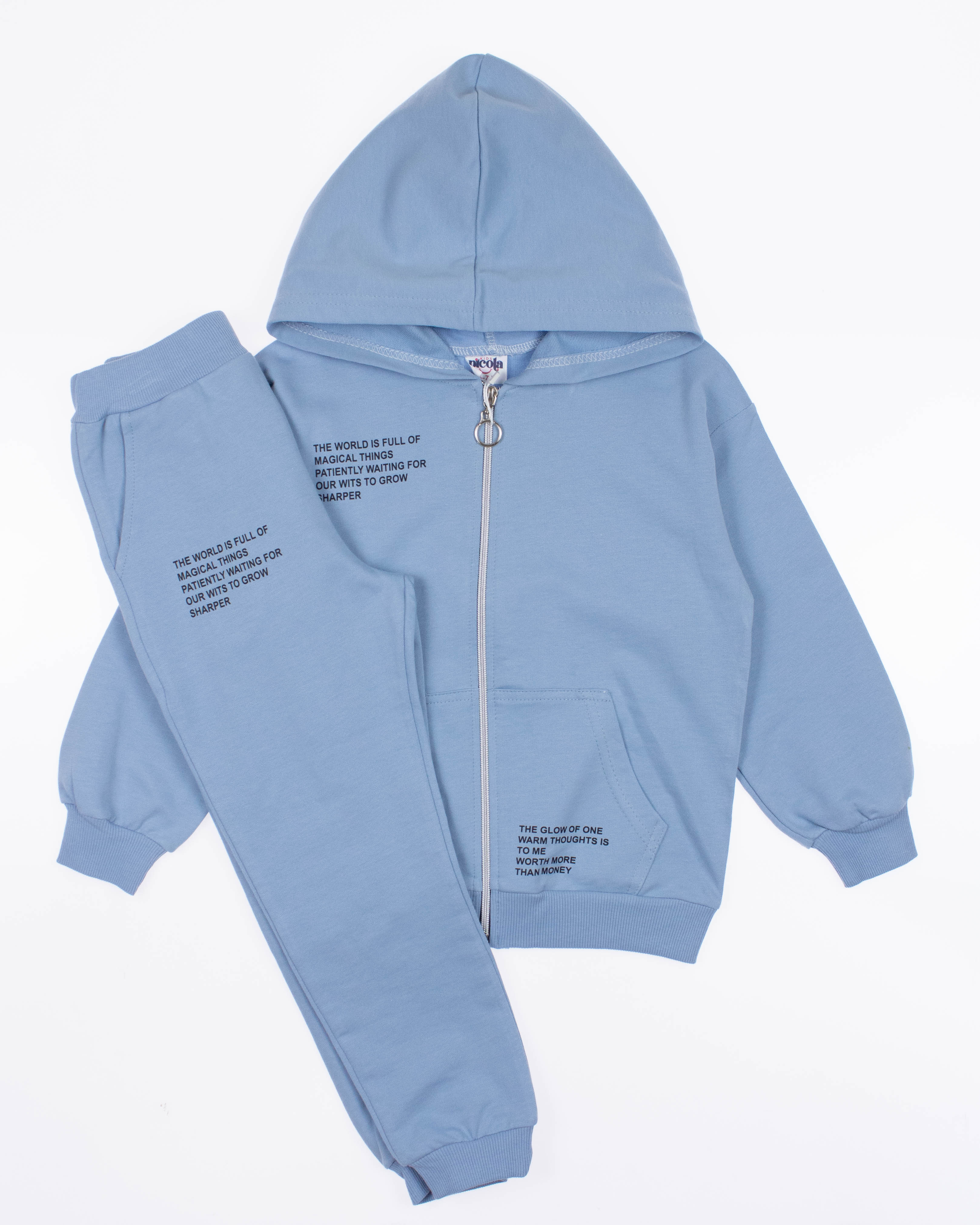 Универсальный костюм PICOLA BABY можно носить как домашнюю одежду или как одежду на каждый день. Брюки имеют эластичные манжеты на поясе и щиколотках и это очень хорошо, ведь они будут идеально сидеть по фигуре и не стеснять движения ребенка. Трикотажные детский костюм безусловно должен быть удобными и для этого в моделях используются мягкие ткани которые еще и будут создавать приятные ощущения на коже. Это универсальная вещь которая должна быть в гардеробе. Костюм выполнен из трикотажа футер (петля).