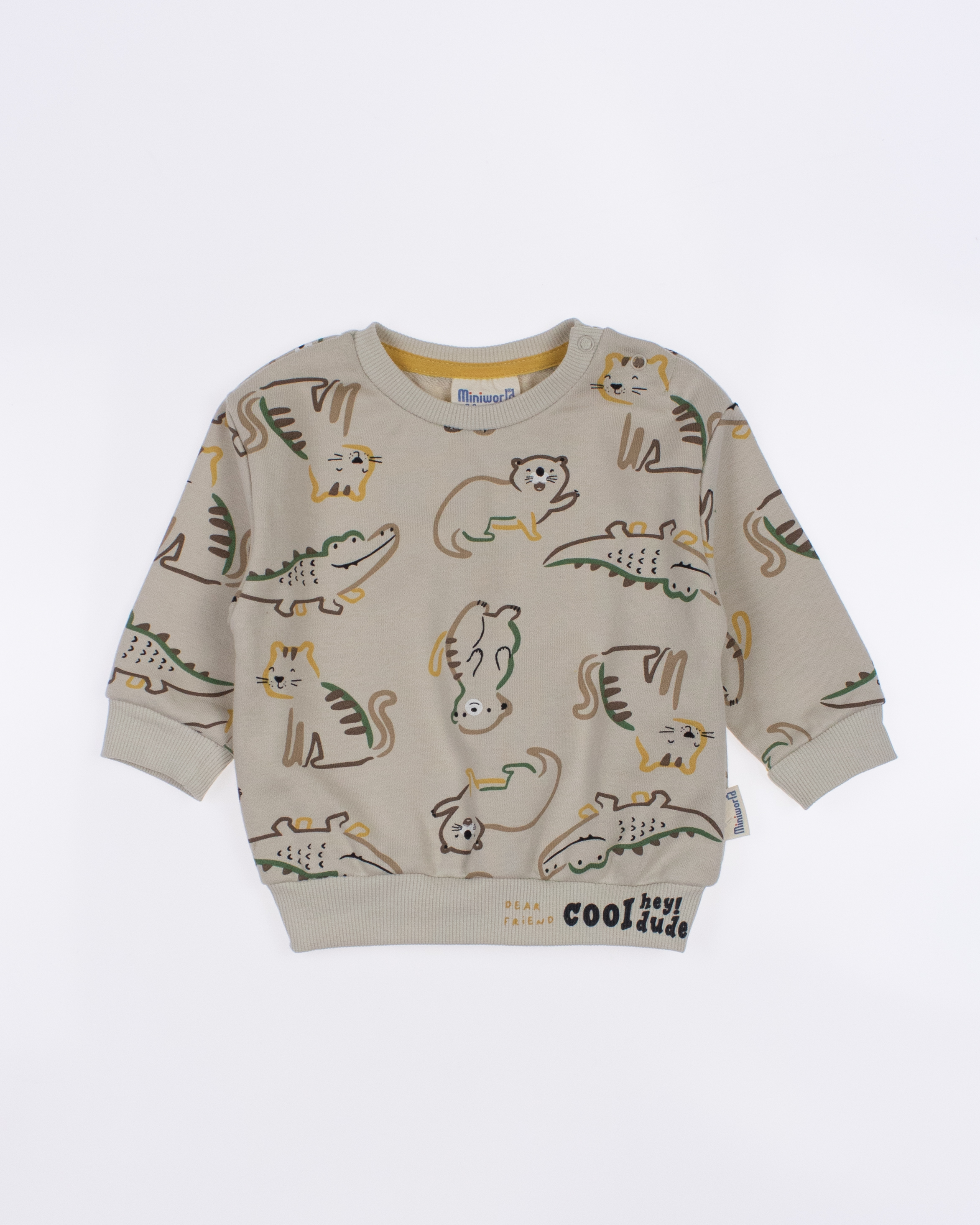 Мы предлагаем оптовые продажи детской одежды производства Турция. Хлопковый костюм  MINIWORLD выполнен из 100% хлопка, что гарантирует комфорт и безопасность для самых маленьких детей. Свитшот имеет удобную застежку-кнопки на плече, что облегчит процесс надевания и снятия одежды. Штанишки с мягкими манжетами на эластичном поясе идеально подходят для ношения с подгузником, обеспечивая свободу движений и комфорт. Детский милый принт на костюме поможет развить фантазию и воображение ребенка, делая его образ ярким и запоминающимся. Костюм MINIWORLD - отличный выбор для маленьких модников и их заботливых родителей. Не упустите возможность приобрести этот уникальный товар оптом по выгодной цене!