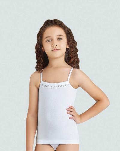 Белая бельевая майка для девочек отличного качества и комфортна при ношении. Однотонная майка без рисунка, классическая модель для ежедневной носки. Майка для девочки идеально под блузки белого цвета. Майка на тонких и широких бретелях может использоваться как для сна , в школу , под одежду . Ткань очень практична, комфортна и гипоалергенна. Белье для девочек не мнется, хорошо тянется, сохраняя первоначальный вид после многочисленных стирок.