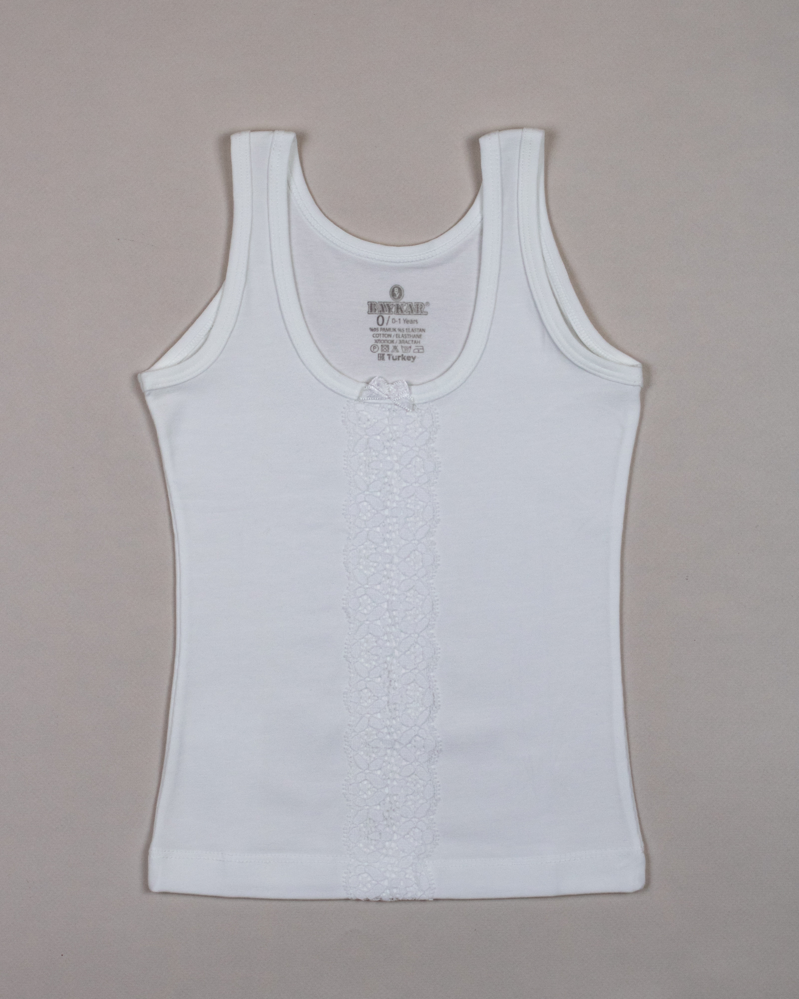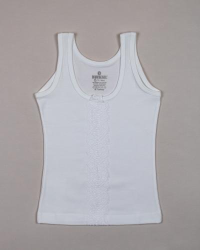 Белая бельевая майка Baykar для девочек оптом. Однотонная майка без рисунка, классическая модель для ежедневной носки. Майка для девочки идеально под блузки белого цвета. Майка на тонких и широких бретелях может использоваться как для сна , в школу , под одежду . Ткань очень практична, комфортна и гипоалергенна. Белье для девочек не мнется, хорошо тянется, сохраняя первоначальный вид после многочисленных стирок.