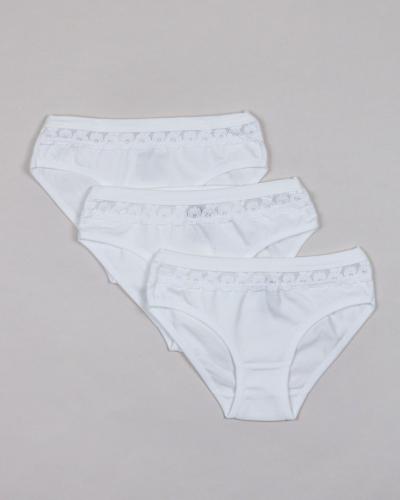 Трусы детские для девочек хлопковые, украшены узорчатым эластичным кружевом.Классическая модель с удобной посадкой, мягкие на ощупь, комфортные и безупречные в носке. Мягкая резинка не давит и не натирает кожу. Дышащая, хлопковая ткань гарантирует комфорт в течение дня.